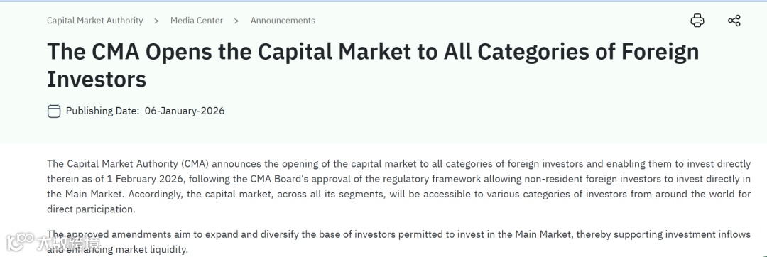 2025年7月:CMA率先简化部分外国投资者(含GCC国家居住或曾居住者)开设和运营投资账户的流程。