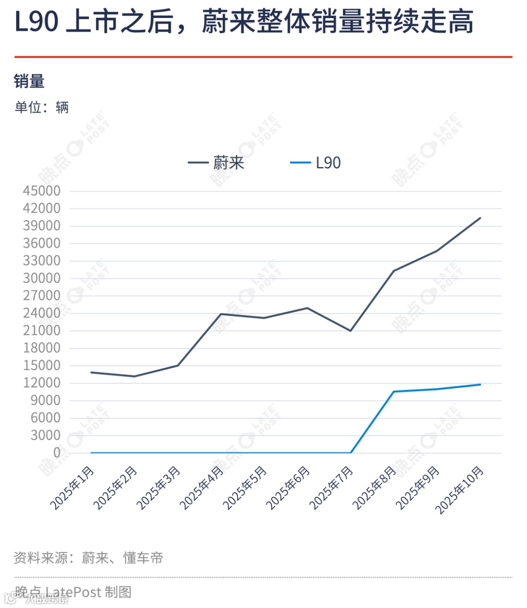尽管该细分市场此前占比不足3%,属小众领域,但L90连续三个月交付破万后,11月零售量回落至约6000辆。即便如此,其已实质性推动蔚来完成关键转型。