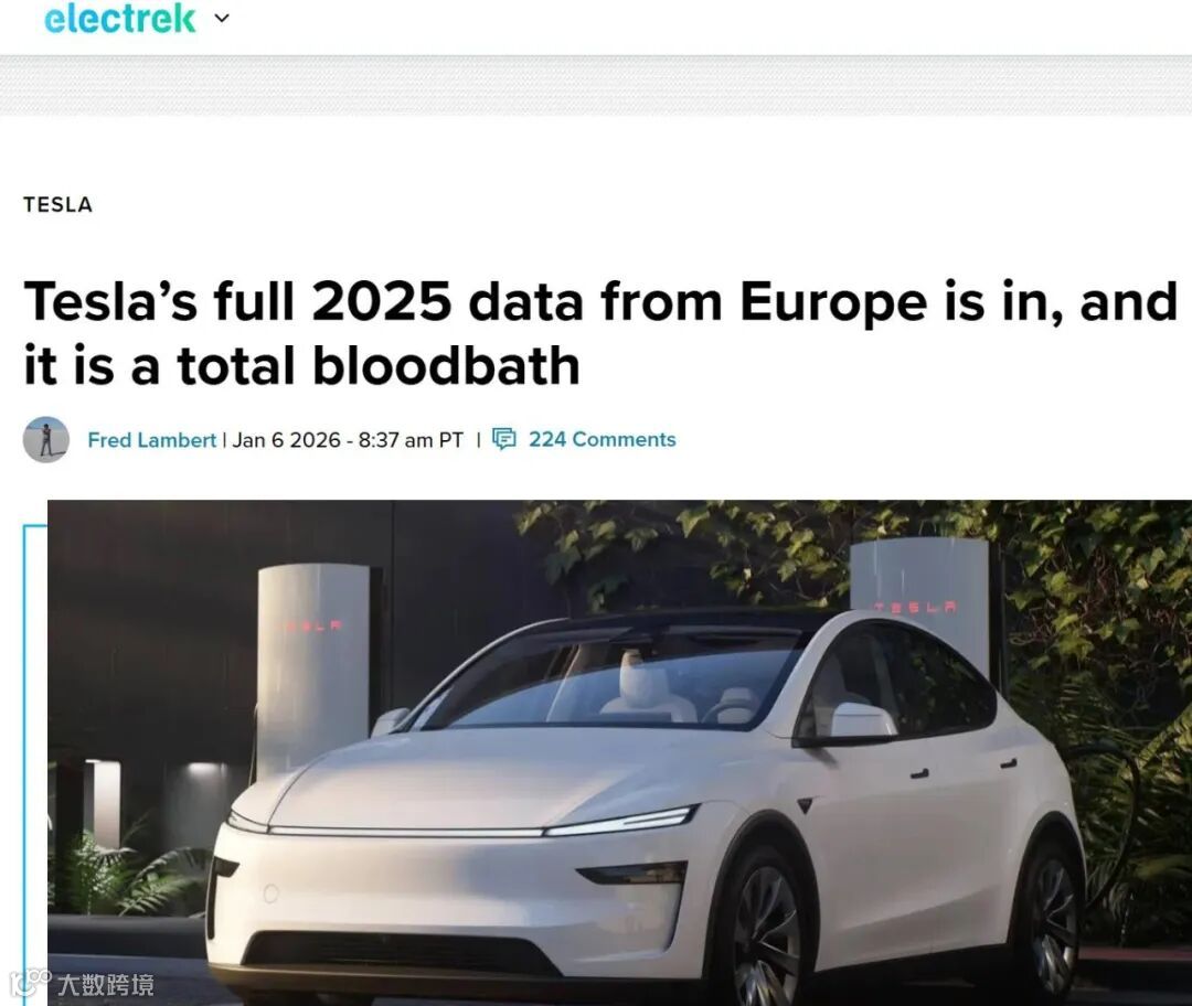 特斯拉2025年欧洲销量下滑27.8%,多国市场大幅萎缩