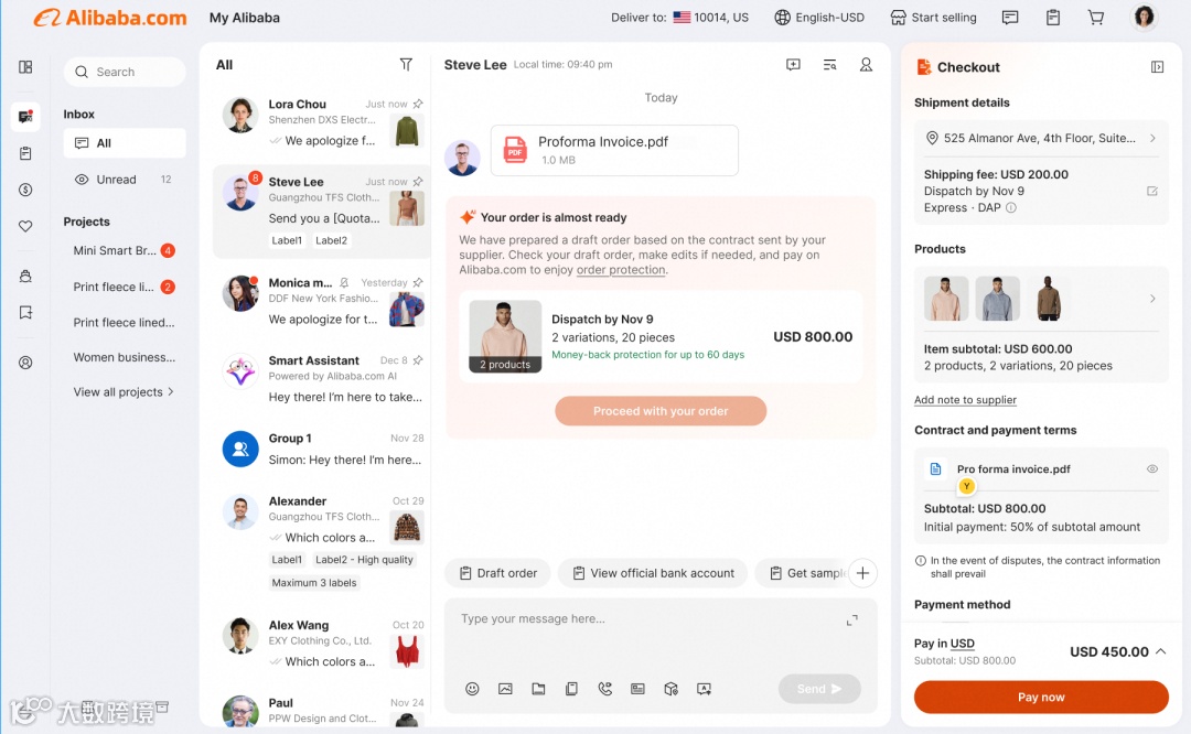 阿里国际站即将上线“沟通场景PI单一键转交易订单”功能