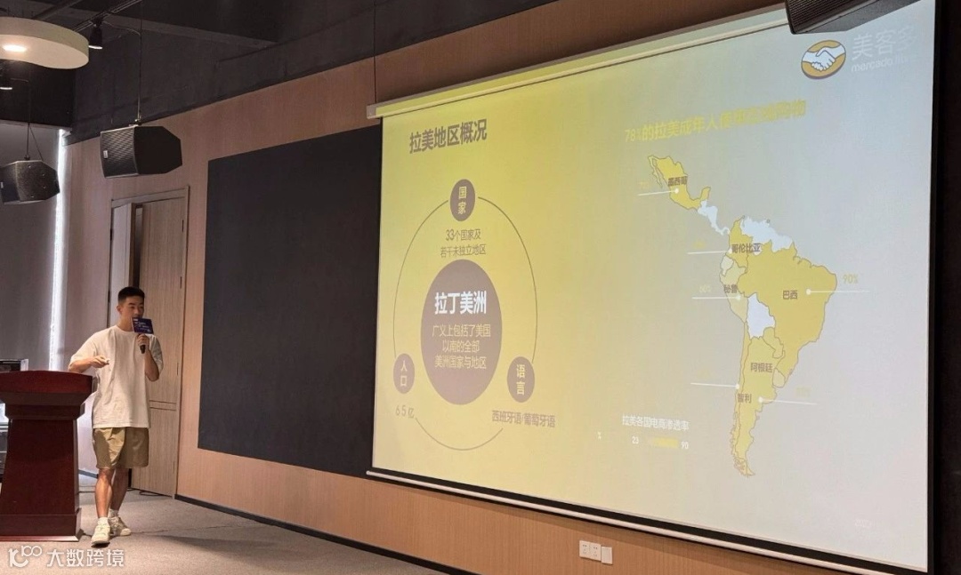 随后,美客多中国渠道招商及生态服务管理商务经理Jonas Zhang带来了题为“迈向新增长:解锁出海拉美机遇赛道”的演讲。他详细阐述了拉美市场的独特魅力与增长潜力,并介绍了美客多平台如何助力企业精准定位市场、高效拓展业务,为企业在拉美市场的快速发展提供了强大的平台支持。