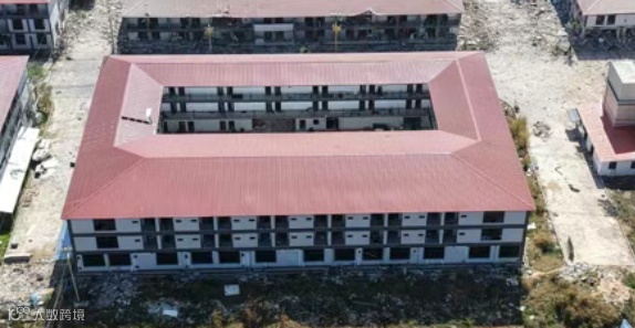 该基地位于柬泰边境重镇波贝以北约50公里,临近马莱公园,主体为一栋两层建筑,目前部分在建,但内部规划清晰,设有独立办公楼与住宅楼,功能分区明确,完全适配电诈运营与人员生活需求。