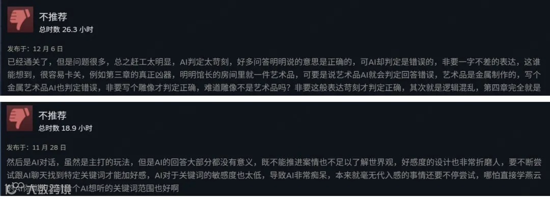 抖个机灵企图跳关,要能成功就会牺牲解谜体验;绞尽脑汁反复尝试,感觉答案大差不差,若失败必然吐槽人工智障,即便成功也不够有成就感,更何况重心往往是看剧情发展。