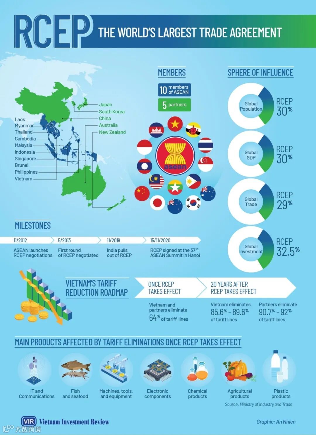 东盟自由贸易区 (AFTA) 实现成员国内部关税近乎归零,极大降低了区域内贸易成本;区域全面经济伙伴关系协定 (RCEP) 则涵盖东盟十国及日本、韩国、中国、澳大利亚、新西兰,构成全球规模最大的贸易协定,覆盖全球约 30% 的人口与 GDP,将为东南亚经济增长提供强劲推力。
