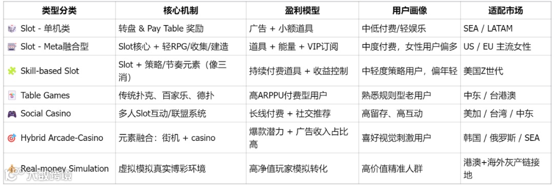 ✅ 真正有商业价值的Casino类型,不是按玩法划分,而是: