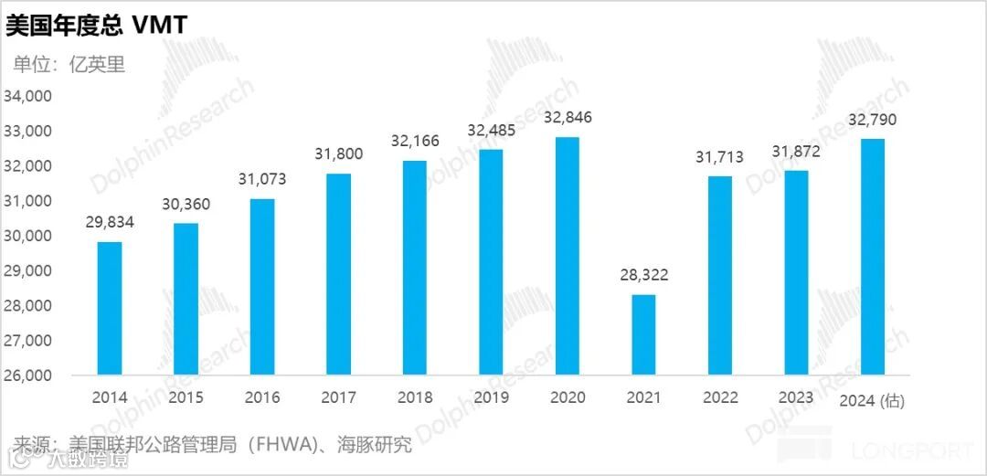 美国私家车通勤占比达91%,公共交通仅3%–5%,网约车+出租车合计占比不足2%。据美国联邦公路管理局(FHWA)数据,2024年客运车辆总行驶里程约3万亿英里,而网约车载客里程仅227亿英里,占比不足1%(约0.8%)。