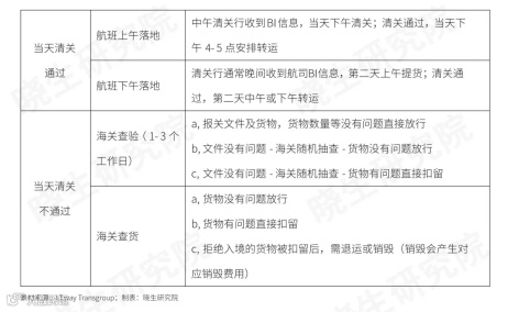 公共机场监管仓存在效率低下的问题。提货分货时间由公共监管仓决定,通常情况下,上午落地的航班,公共监管仓会在下午安排提货,下午晚上落地的航班则可能要到次日上午提取,最迟会到次日下午或晚上。而无论是有无监管仓或者租用其他监管仓,清关行都需要等货物进入监管区域,分货完毕后才能进行清关。