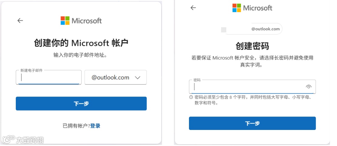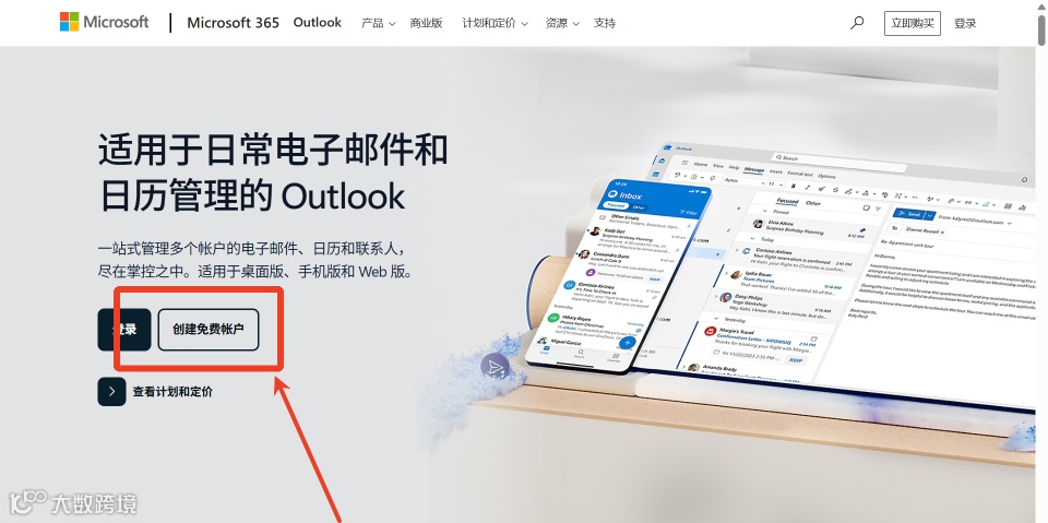 ① 打开 Outlook 官网(outlook.live.com),点击“创建免费账户”