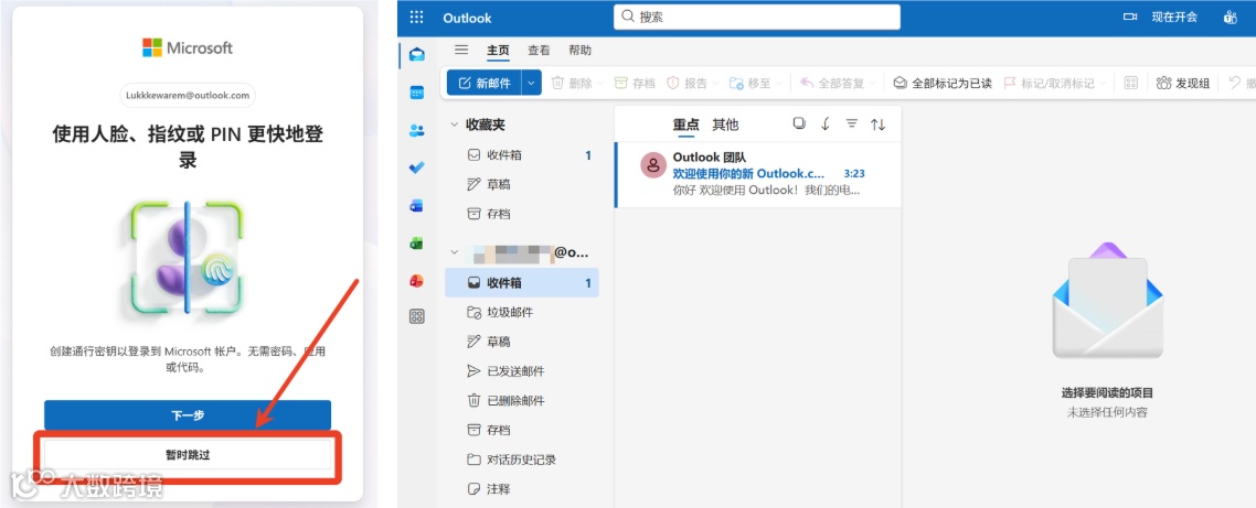 ⑤ 面部识别可选择跳过,至此邮箱注册完成