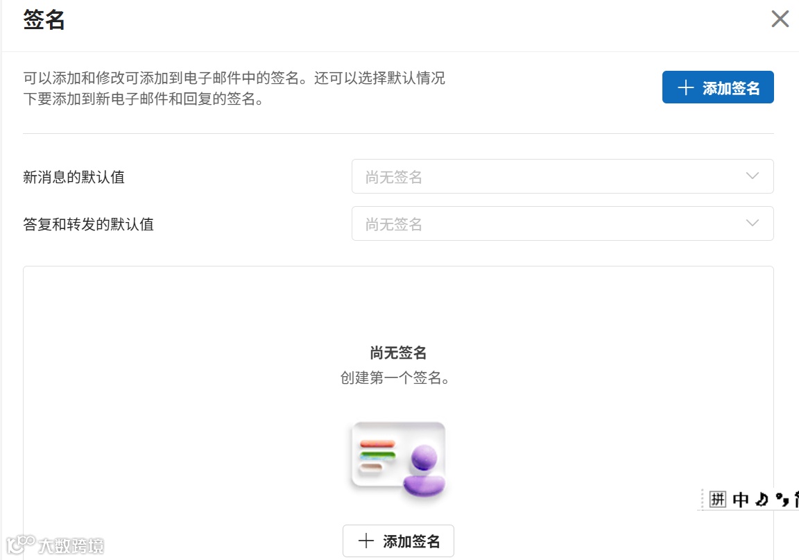 点击 [插入] → [签名] 完成配置,后续发邮件直接选用已设签名即可。