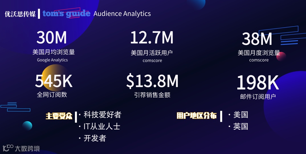 Tom's guide的受众主要是科技爱好者、IT从业人士以及开发者。在英美地区,平均每3个成年人中就有1个人浏览过Tom's guide。