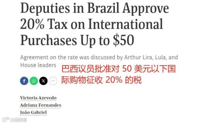 自2024年8月1日起,巴西对进口商品的关税政策进行了重大调整:对价值50美元及以下进口商品征收20%的关税;50美元以上进口商品缴纳60%的关税;50-3000美元进口商品可享20美元税收折扣。