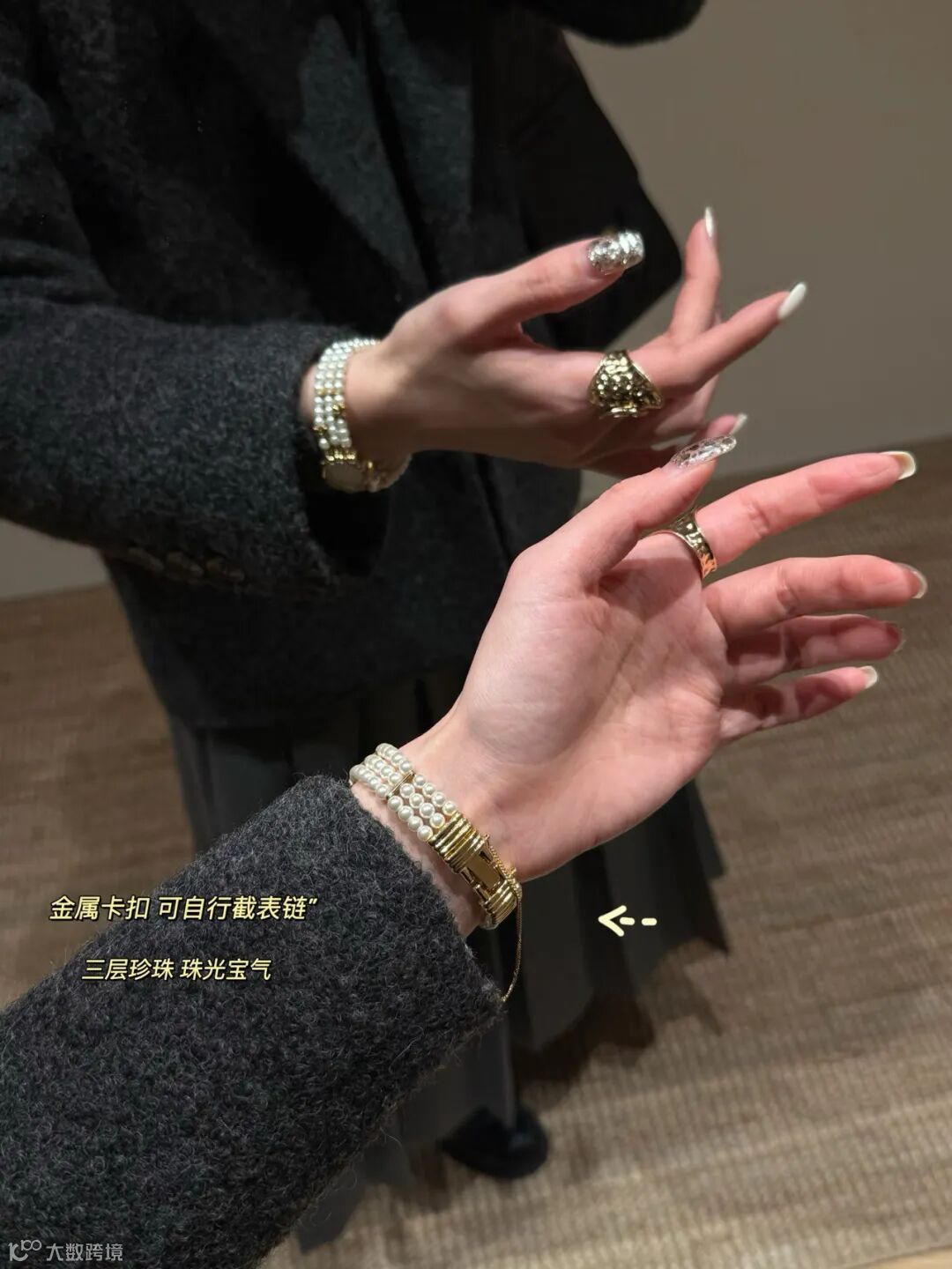 珍珠则是施华洛世奇的珍珠 光泽珠光都是一等一 质感与珠光交错碰撞 就很高级!