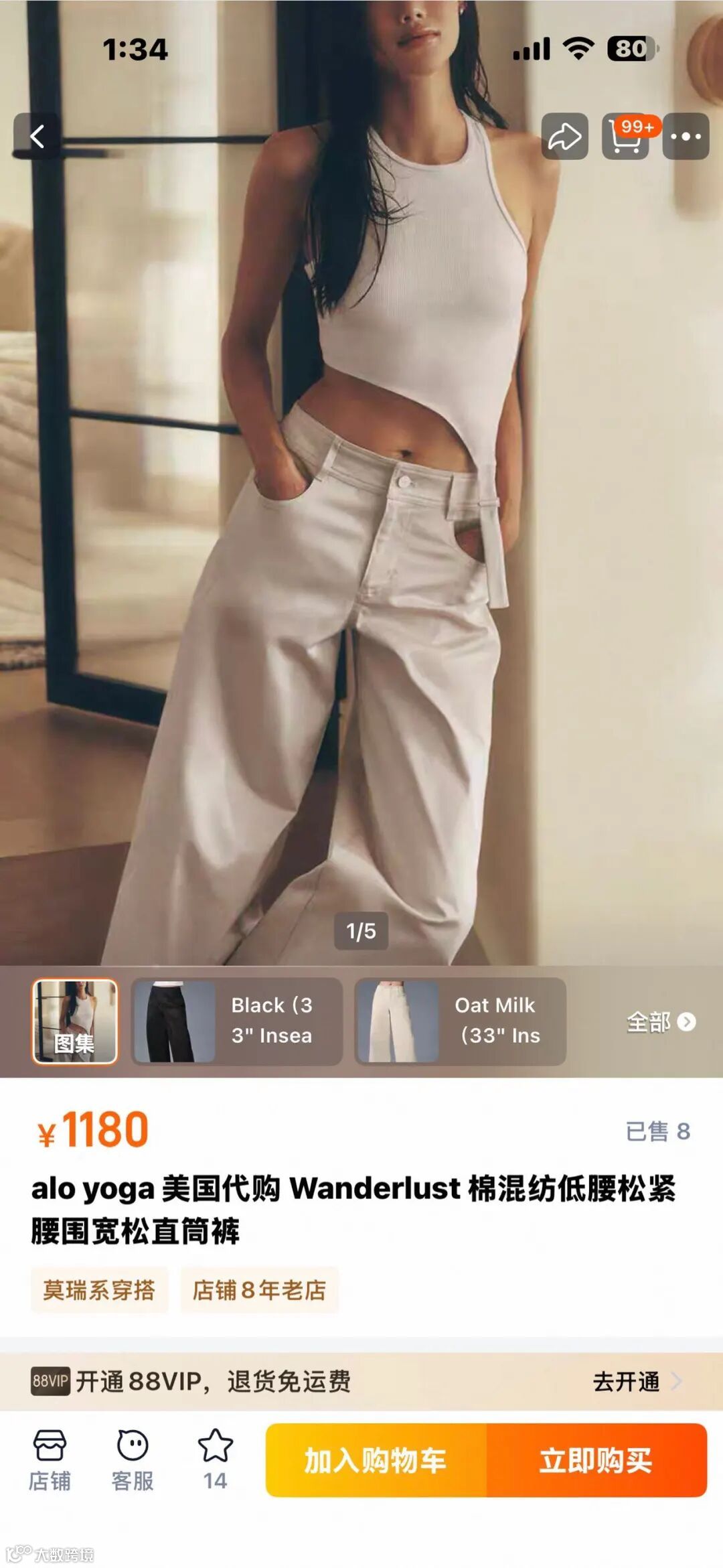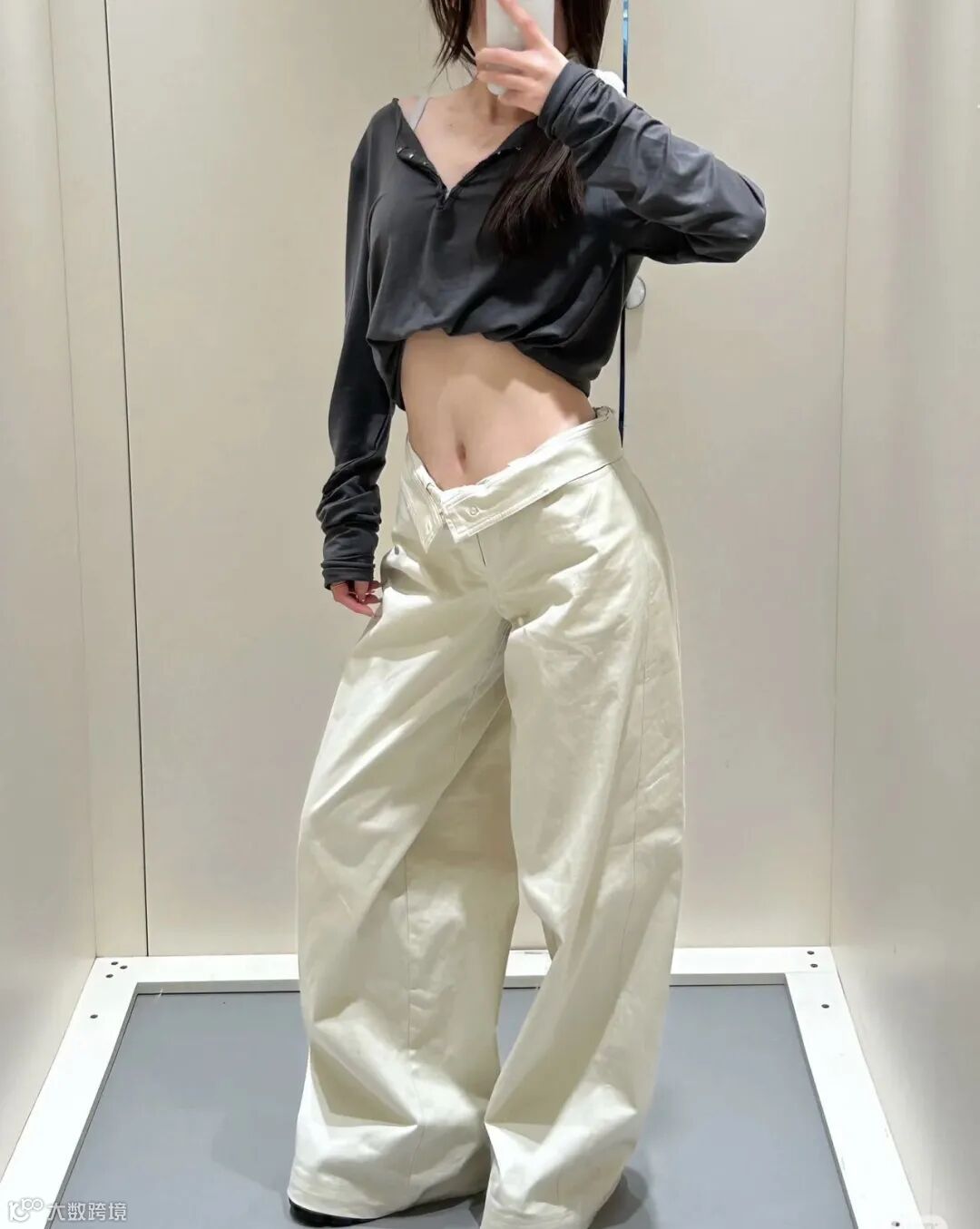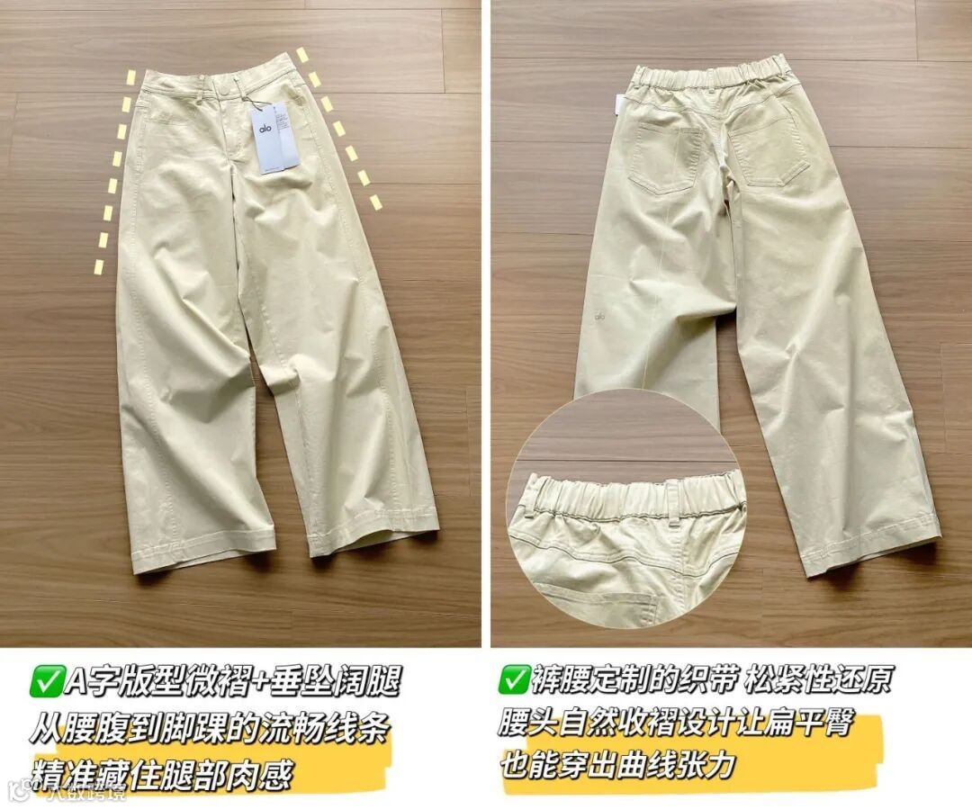 外贸新款,A字垂坠阔腿版型,精准藏肉;腰头自然收褶设计,扁平臀亦显曲线张力。