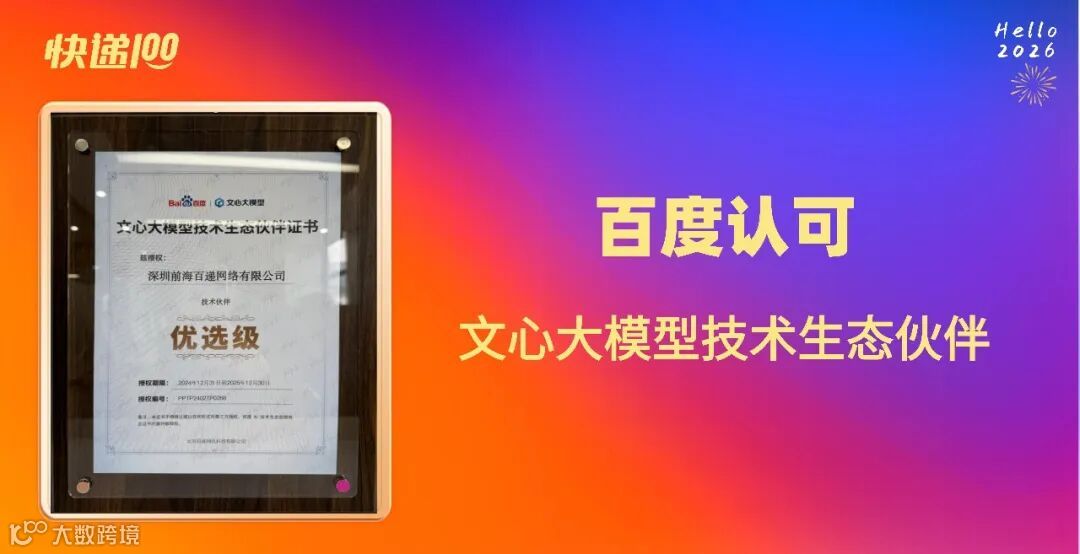 荣誉加持,步履不停。2026年,快递100将坚守“客户为先、生态共赢、守正创新”核心价值观,以“数智化连接全球物流网络,创造极致用户体验”为使命,持续深化「AI领创方法论」,加大技术研发投入,提升用户体验,携手生态伙伴共创更高价值的未来。