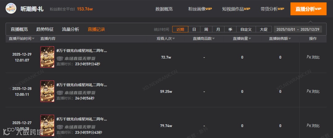 ▲ “听潮阁·礼”的直播数据。图源:新抖