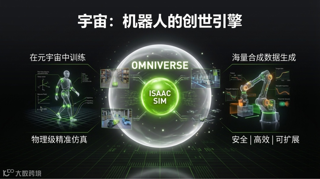 自动驾驶的技术范式正在向所有机器人系统延伸。黄仁勋提出 “从轮式机器人到万物机器人” 的蓝图 —— 自动驾驶的感知、决策、控制技术,将应用于工业机器人、服务机器人、医疗机器人等所有物理交互设备,开启 “机器人产业的黄金时代”。英伟达的 OMNIVERSE 平台与 ISAAC SIM 仿真工具,为机器人研发提供了物理级精准的仿真环境,能够生成海量合成数据,使机器人在虚拟世界中完成训练后,直接应用于现实场景。这种 “虚拟训练 - 现实部署” 的模式,将机器人研发周期缩短 70%,成本降低 80%,极大地加速了产业规模化进程。