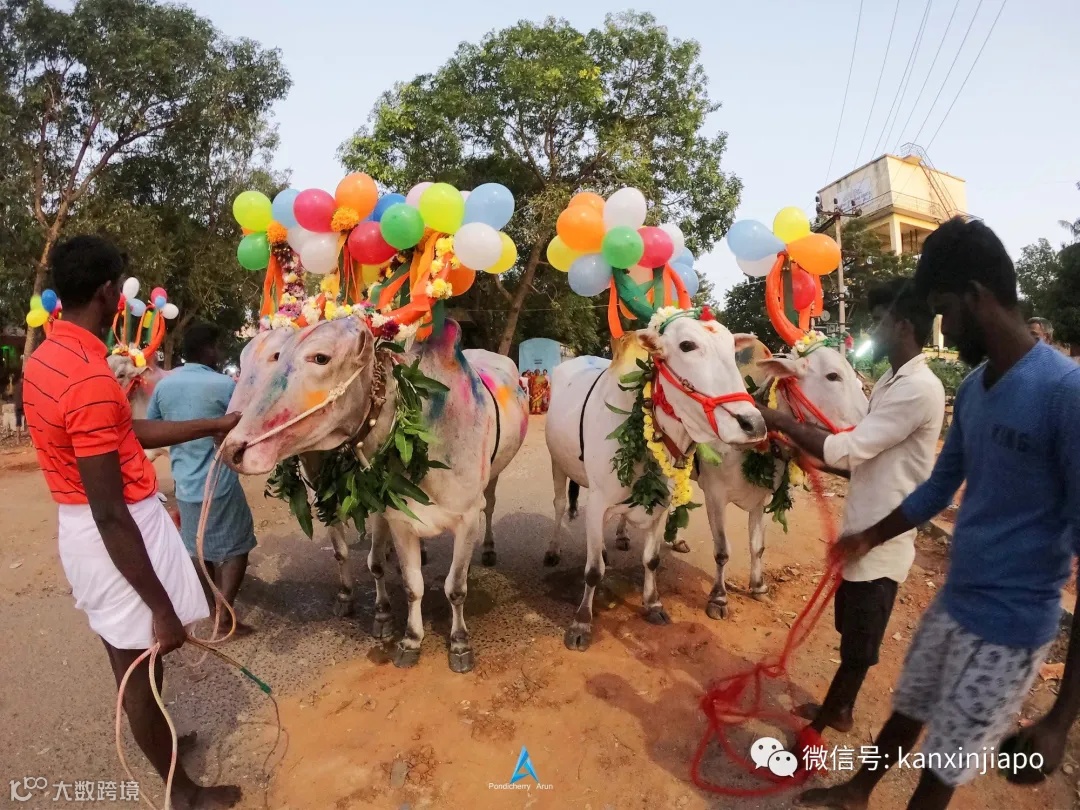 牛在传统农耕里功劳很大,这天自然要当主角。你会看到它们被洗得干干净净,牛角涂上颜色,戴上花环和铃铛,得到人们真诚的感谢。