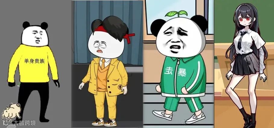 它的形式相当简陋,大部分情况下,就是给一个熊猫头表情包配上身体,通过熊猫头表情包的变化、简单的人物动作和AI独白,站桩演绎些简单的剧情。