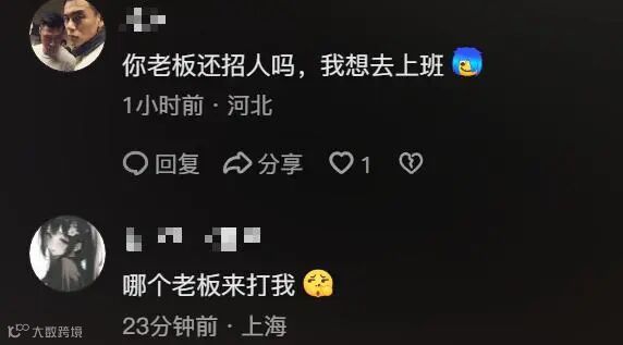该视频发布后,评论区迅速发酵,不少网友调侃“希望老板也能打我一顿”,甚至有人留言“不要50万,20万就行”。尽管多为戏言,但也折射出当下部分人群对收入困境的感受。