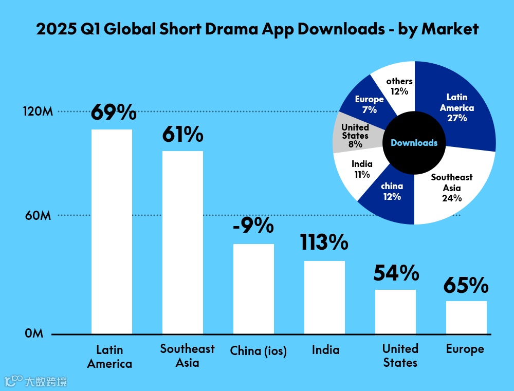东南亚与拉美成为增长引擎,2025年一季度下载量环比分别增长61%与69%。尽管当前付费能力较弱,但凭借庞大的年轻人口基数,长期发展潜力巨大。
