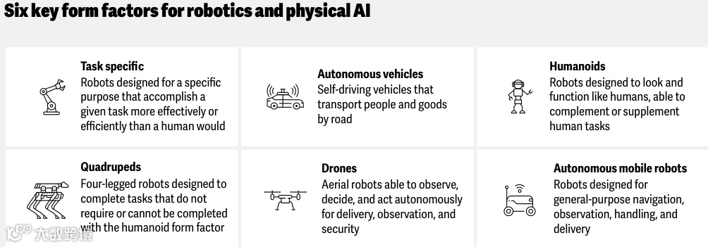 人形机器人作为物理AI集大成者,凭借对人类基础设施的天然适配性(如楼梯、门廊、工作站),展现出独特潜力。