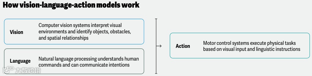其核心在于多技术融合:视觉语言动作模型(VLA)实现多模态理解与指令转化;专用神经处理单元(NPU)支撑本地低延迟、高能效实时推理,满足自动驾驶、远程医疗等严苛时序需求。