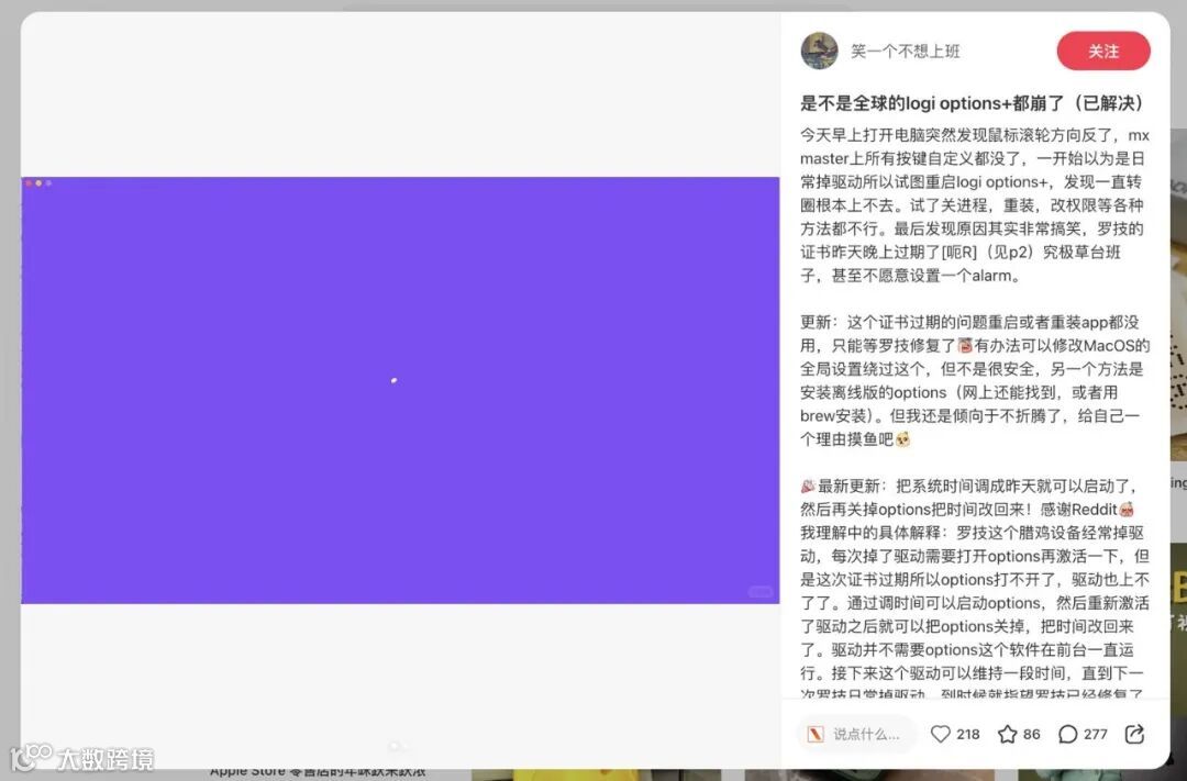 罗技Logi Options+全球宕机:Mac用户鼠标集体“掉驱动”