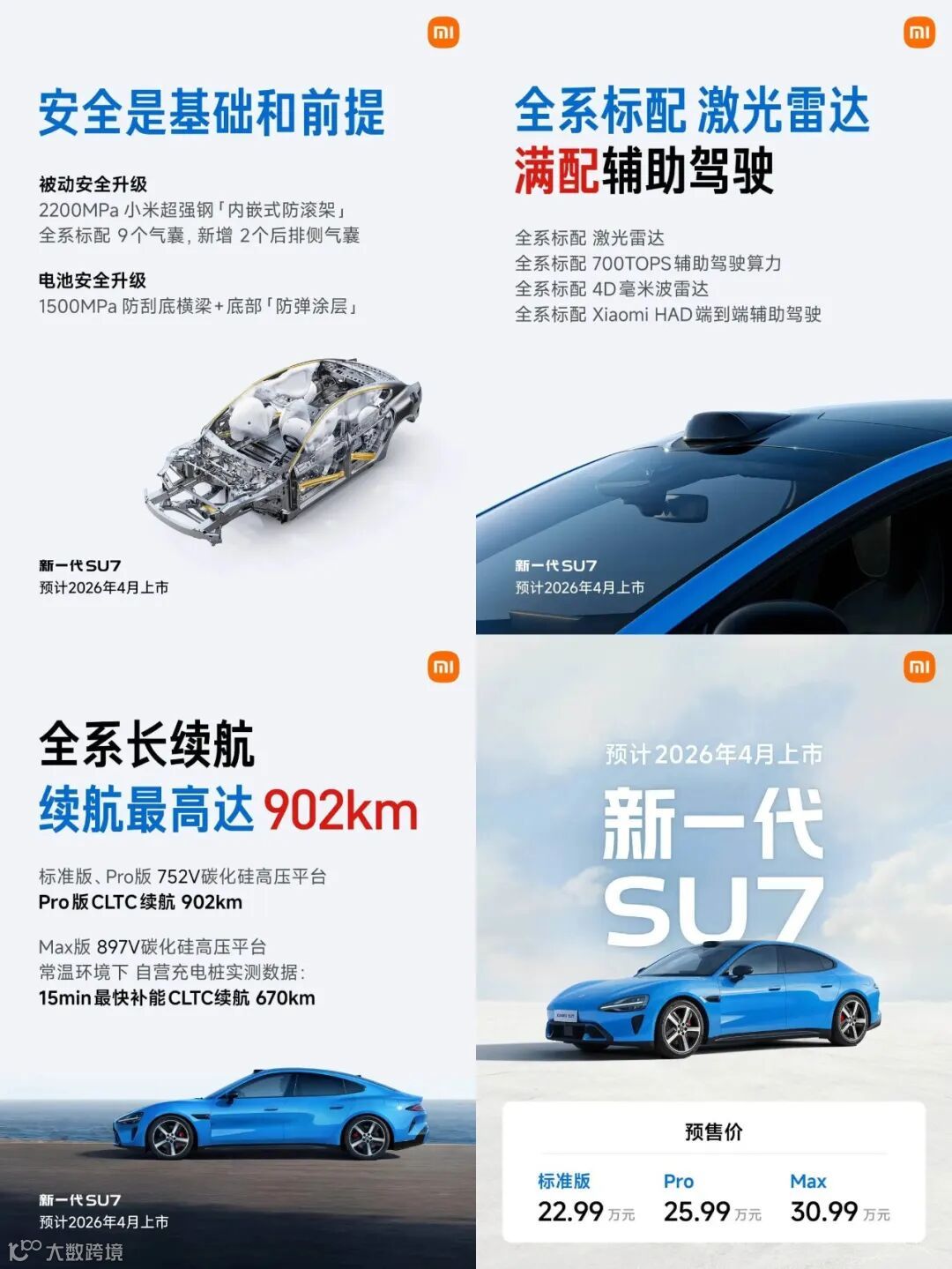 22.99 万元起,新一代小米 SU7 官宣