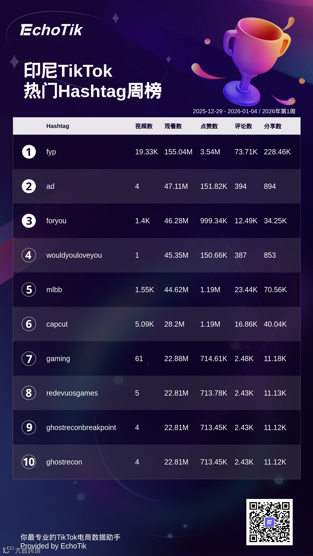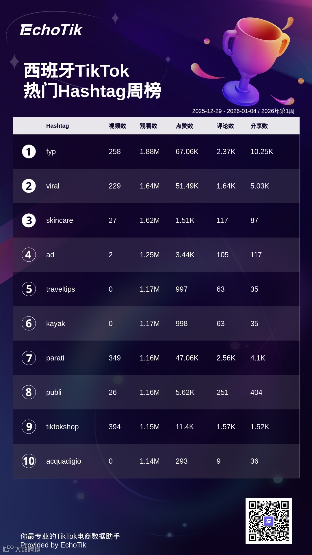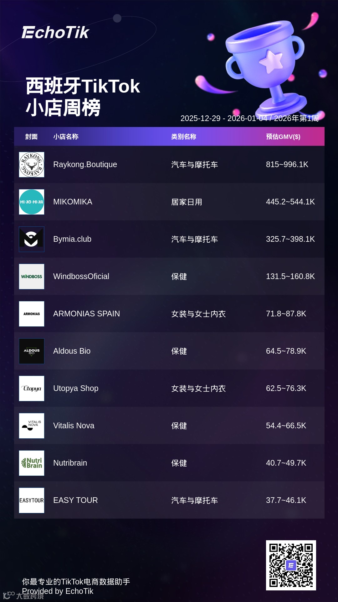 2025年12月29日—2026年1月4日 TikTok Shop 热门周榜汇总