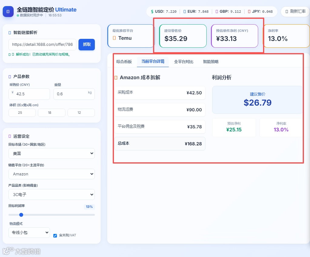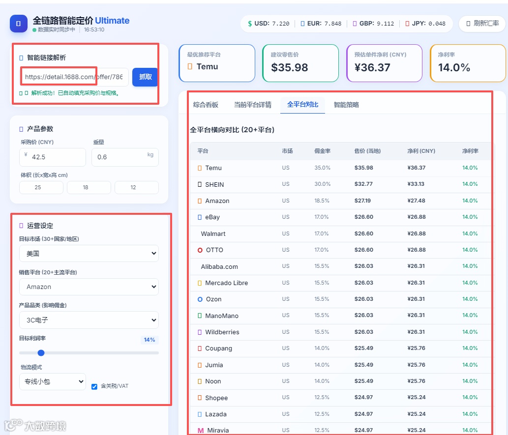 针对卖家日常定价繁琐、跨平台比价困难等痛点,一款轻量级跨境电商产品定价工具已开发完成并投入使用。