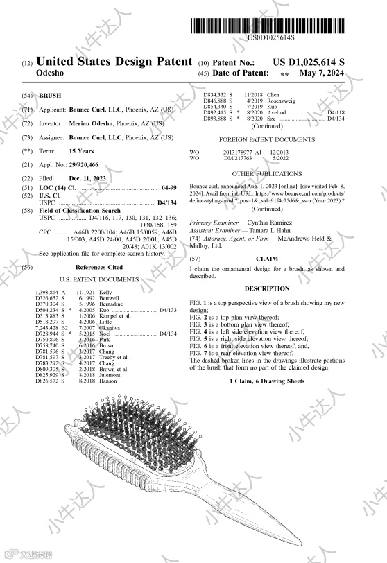 经查询,这款产品于2023年12月11日在美国进行外观专利申请的提交,于2024年5月7日获得了公告。
