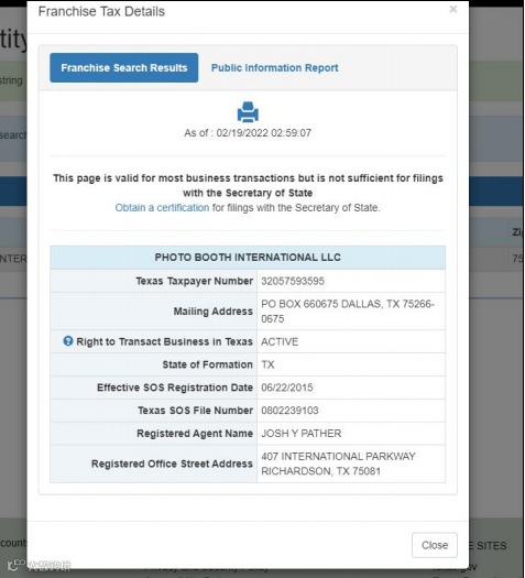 以实操案例 Photo Booth International LLC 为例,所有后续调查均基于准确公司名称展开。