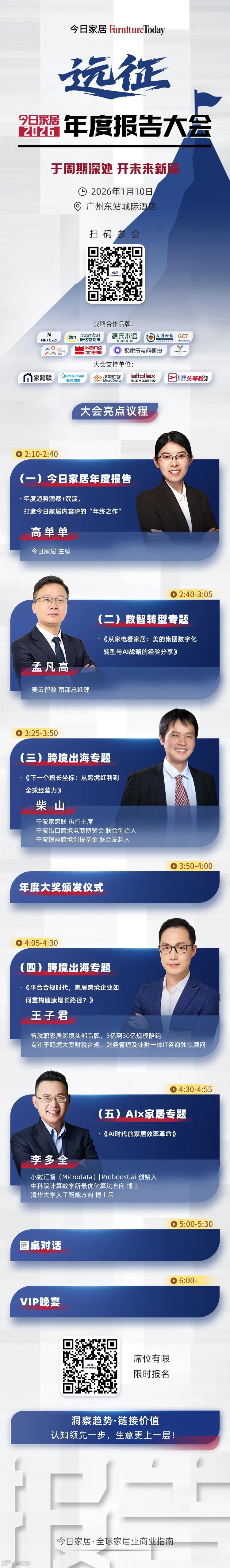 1月10日,《2026今日家居年度报告大会》,深入探讨AI与家居出海的深度协同路径——看清趋势、用对工具、找准属于企业的全球化增长节奏。