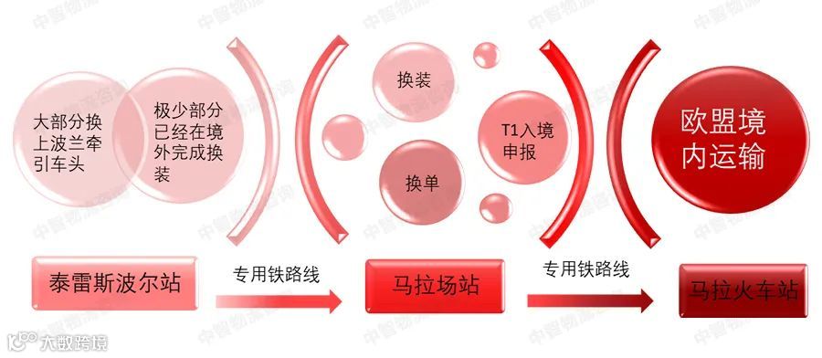 班列开行到马拉地区之后,要完成从独联体国家过境到欧盟过程中最重要的三项操作——换装、换单和T1申报入境。