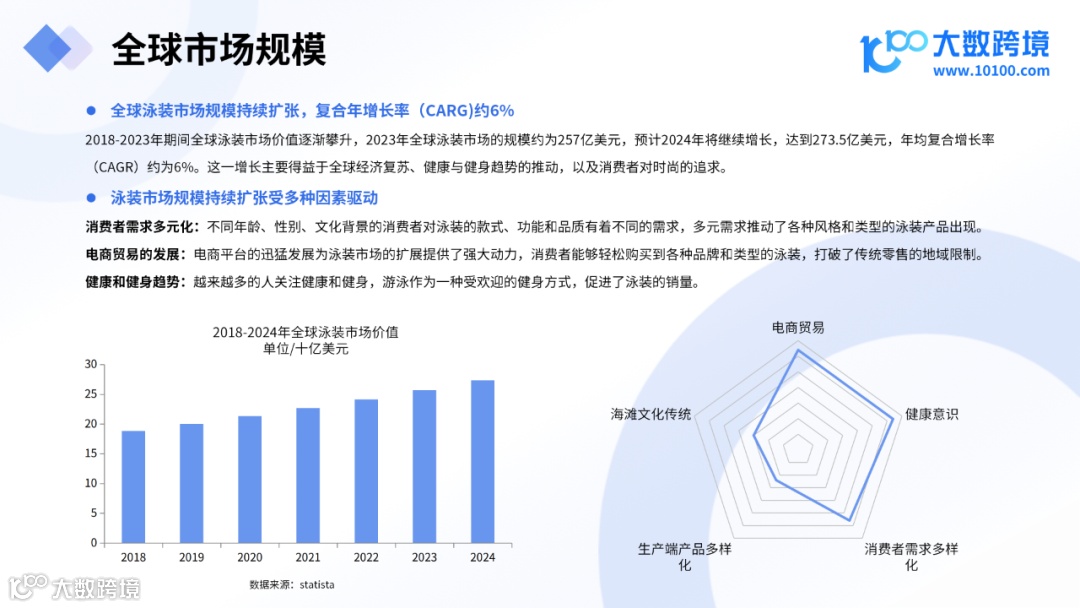 想要获取全部内容,可以关注【大数跨境】公众号,回复【2024全球泳装市场洞察报告】免费下载原报告,查看完整版。
