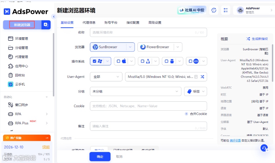 在跨境电商、社媒推广等场景中,单账号模式早已无法满足流量挖掘与业务拓展的需求,多账号布局成为行业通用的运营策略。但原生浏览器下的多账号操作,极易被平台风控判定为关联账号。想要破解这一困境,关键在于为每个账号构建独立的运行环境,而指纹浏览器(如 AdsPower)正是实现这一需求的高效工具。