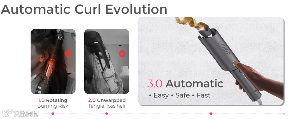 基于此,TYMO 推出了带自动旋转功能的卷发棒,从产品设计贴近用户需求,而不是单纯靠文案“补救”。