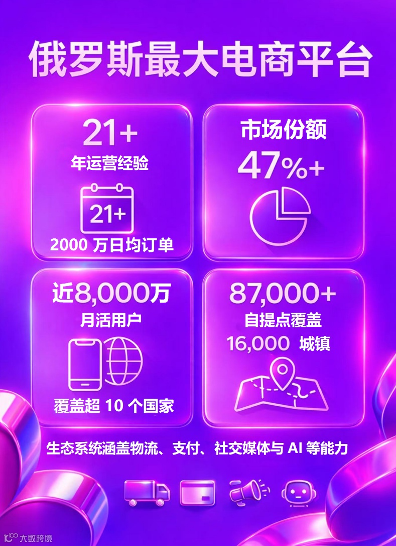 - 俄罗斯最大电商平台,市场份额超47%