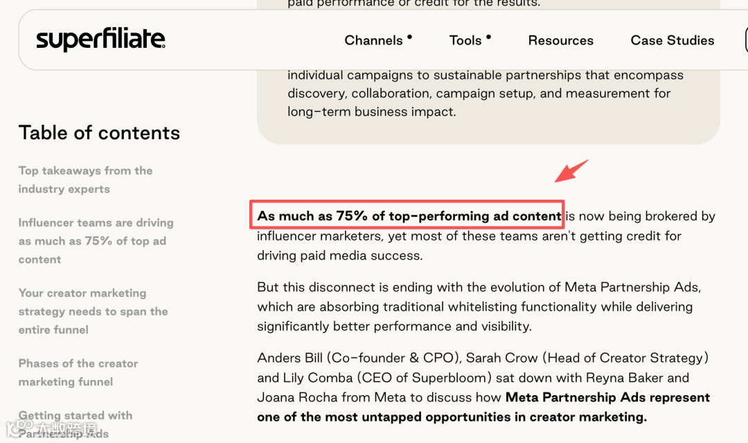 据Superfiliate 2025年数据显示,超75%的高转化广告素材由红人营销团队产出,包括转化型红人视频与图片。这类素材在Meta平台直接带动数百万美元GMV;但其社媒自然流量转化,仅占独立站总营收的5%–10%。