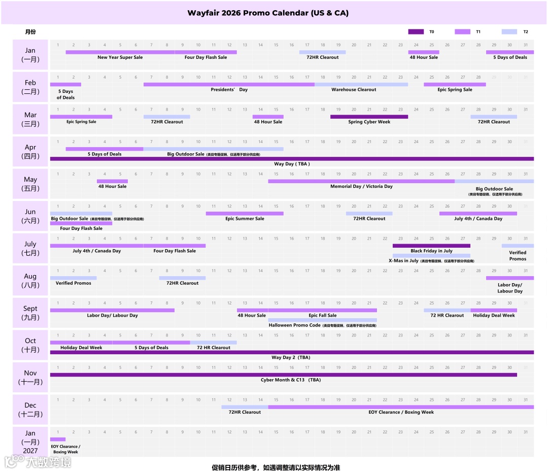Wayfair 2026促销日历(北美)