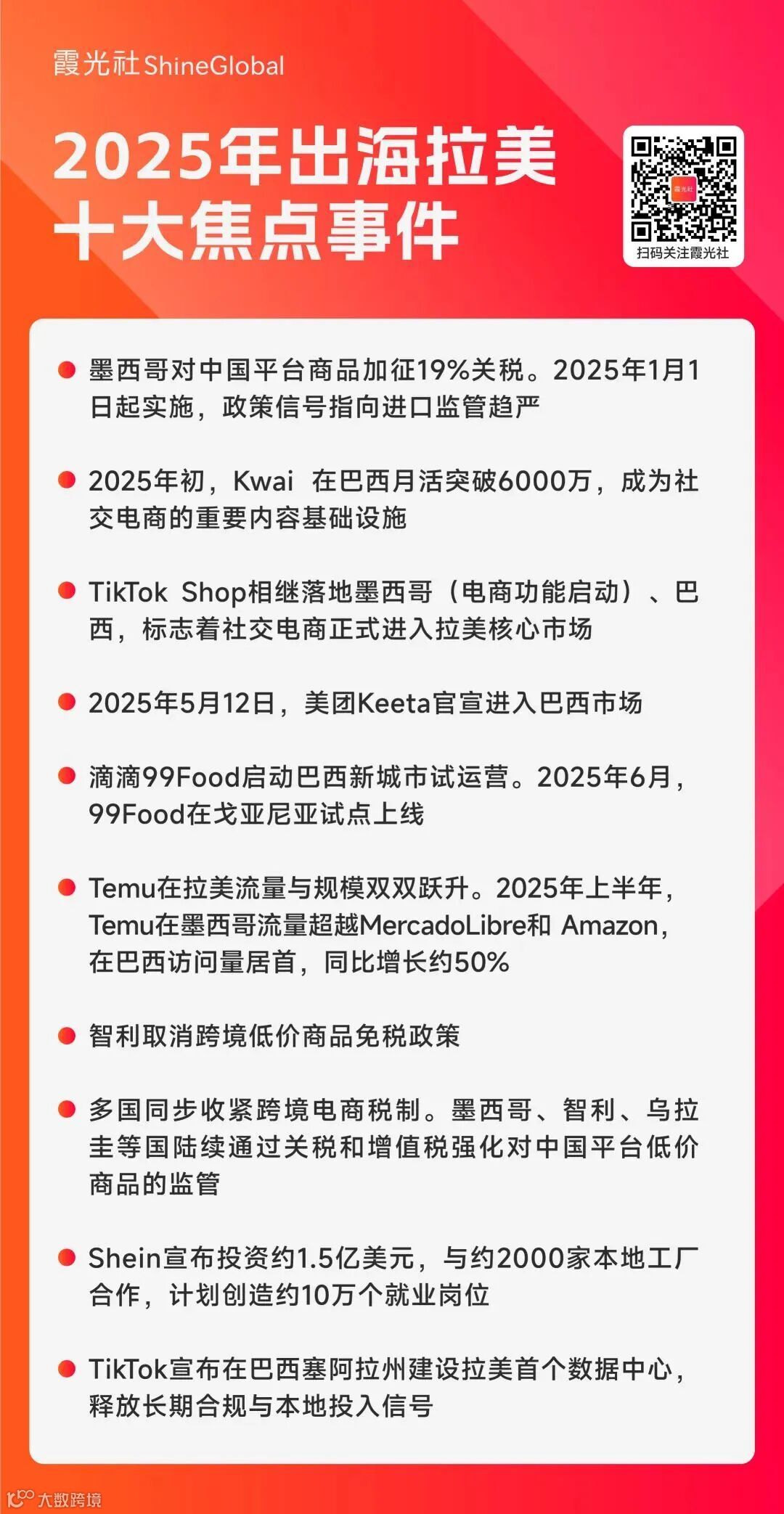 因此,Temu、Shein以低价切入,滴滴(99)与Keeta以出行、外卖、即时配送等刚需服务破局,而非从内容或高端消费入手。拉美,正成为中国模式可验证的现实海外场域。
