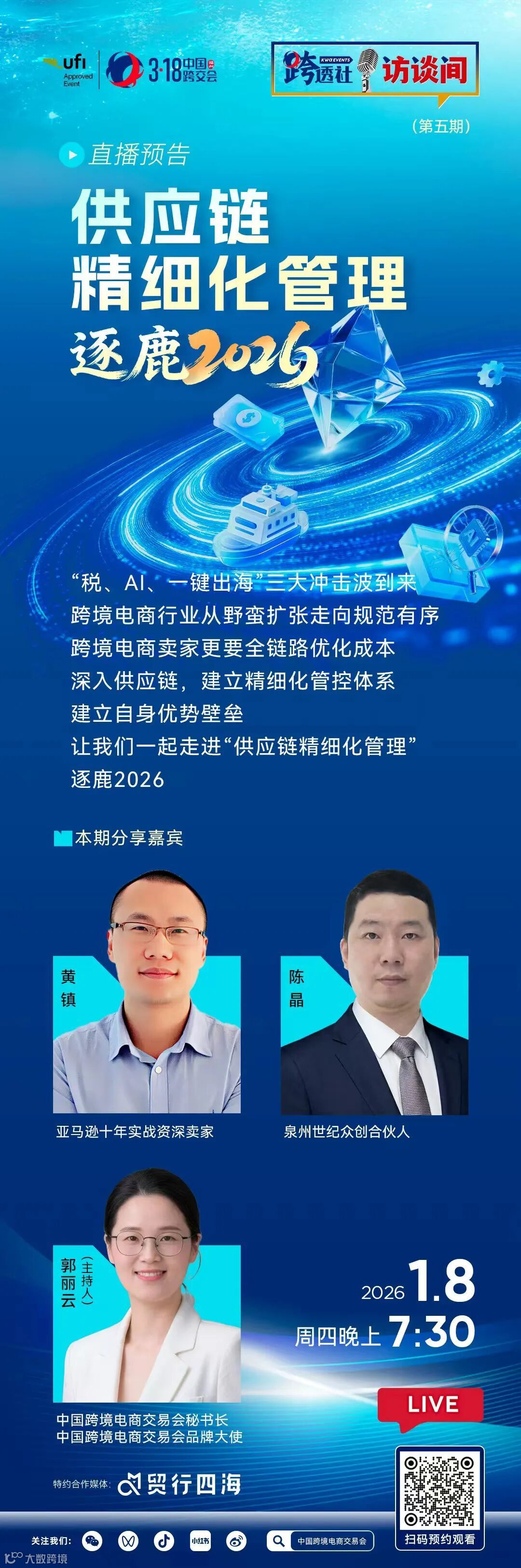 本期主题为“供应链管理大师是如何炼成的?”,特邀两位实战经验丰富的资深卖家,聚焦2025年成本结构剧变,分享如何深度绑定供应链、精细化管控全链路成本,助力卖家高效布局2026年。