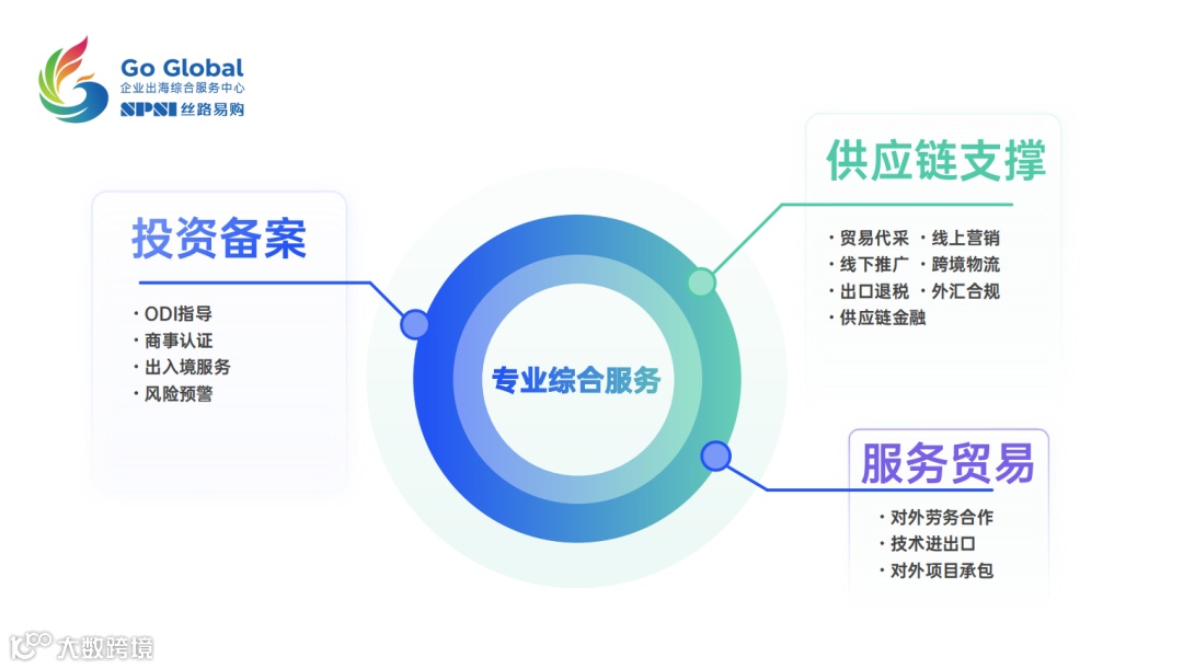 ▲丝路易购企业出海综合服务中心功能图解