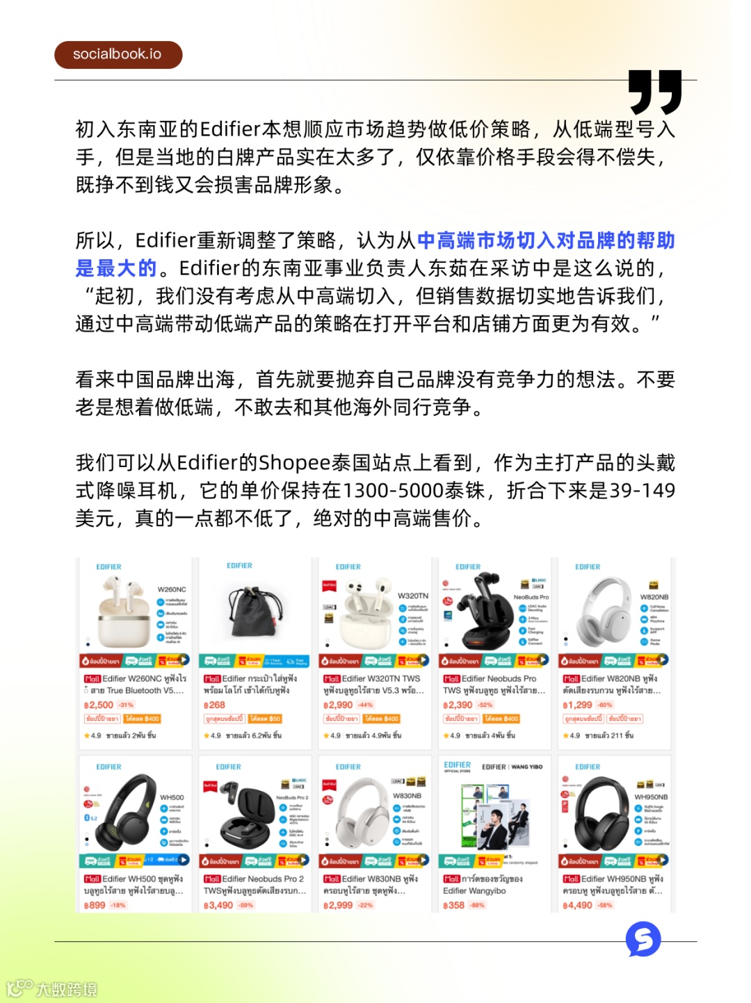 依托长期技术积累,漫步者已成为中国第一、全球第二的专业多媒体音响企业。其主力头戴式降噪耳机定价为39–149美元,定位中高端市场。