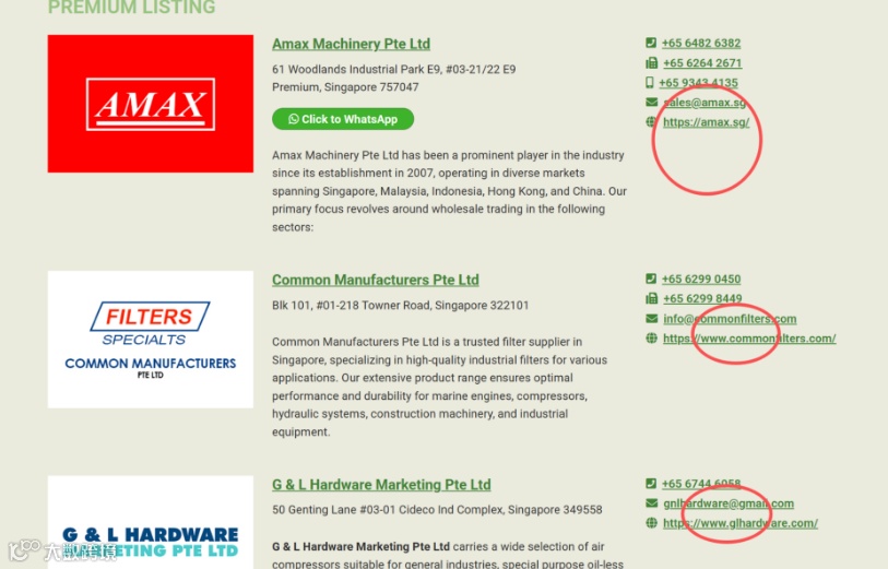 还可以搜whatsapp,关键字+wa+国别号,搜email+网站域名后缀,可以看到他们在社媒上留的邮箱。信息