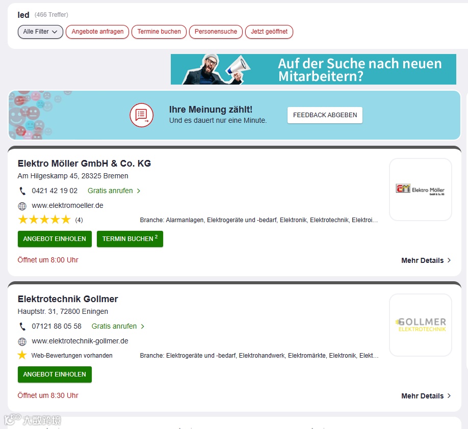 能直接产品词,或者行业词查到公司,如图做灯具的可以搜lighting,可以查看网站,