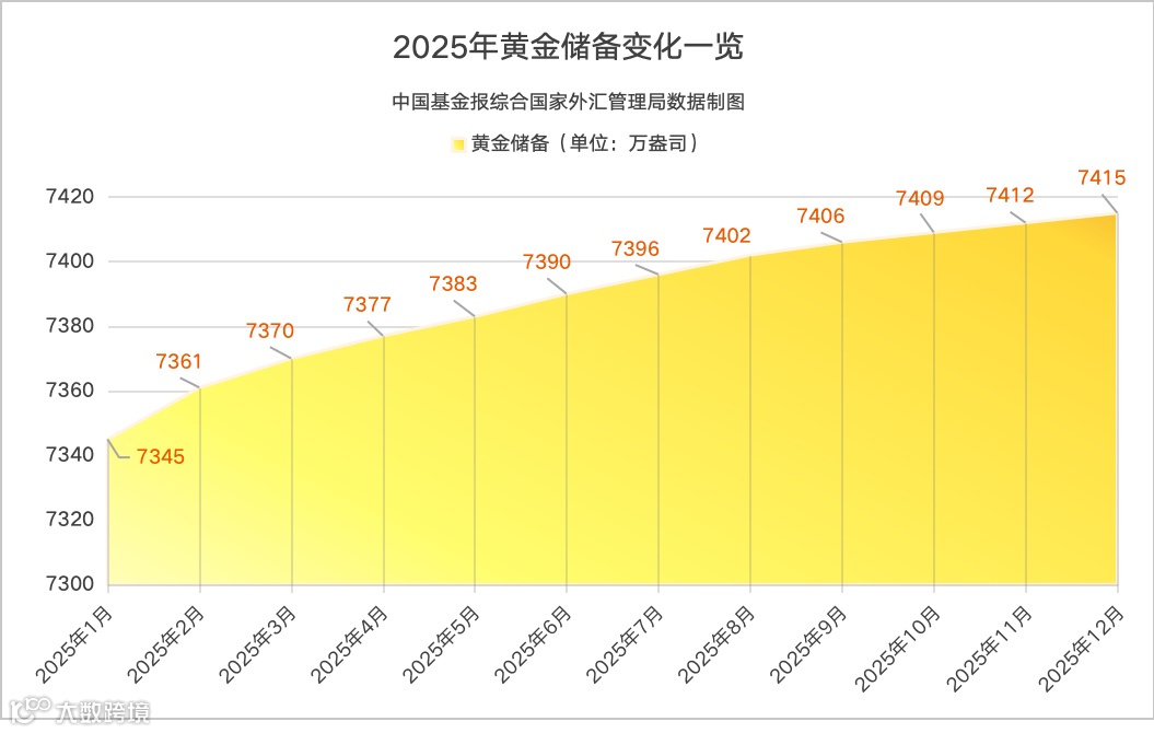 数据显示,截至2025年12月末,黄金储备报7415万盎司,环比增加3万盎司。这是央行继2024年11月重启增持后,连续第14个月增持黄金。