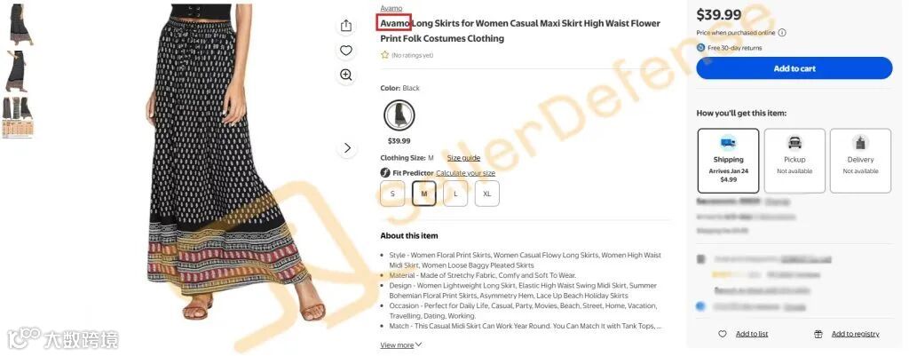 本案为国人原告,案件涉及商标 AVAMO 商标注册在25类服装鞋帽类。原告的前身公司还曾于2024年在美国维权发案,请服饰相关卖家注意排查下架!