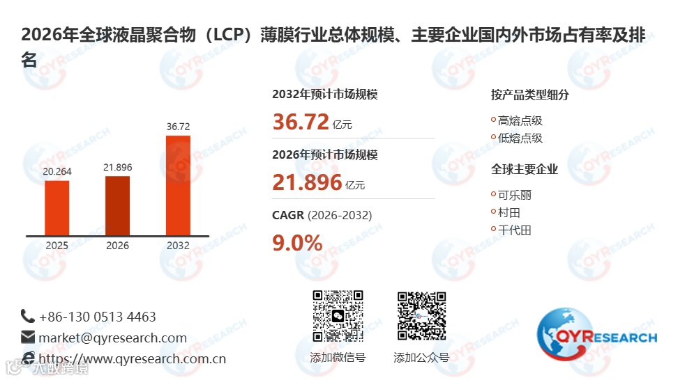 若您希望了解该行业进一步全面深度分析,可参考QYResearch最新发布的《2026年全球液晶聚合物(LCP)薄膜行业总体规模、主要企业国内外市场占有率及排名》研究报告。